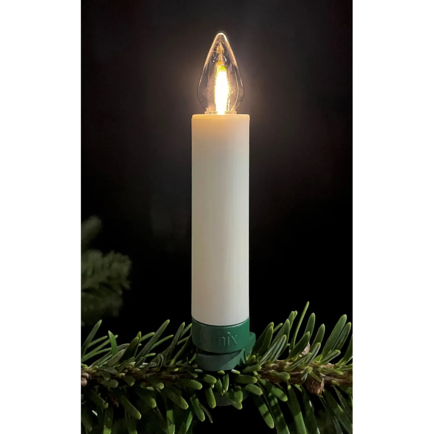 Krinner erweitert seine erfolgreiche Lumix-Serie kabelloser Christbaumkerzen mit SuperLight Flame. Die neue SuperLight Flame Kerze hat die erste jemals in einer kabellosen Christbaumkerze verbaute Faden- oder Filament-LED und damit eine hellere und größere LED als andere Modelle. Flame sieht nicht nur flammenähnlich aus, sondern leuchtet auch heller bei gleichem Energieverbrauch. Die riesige LED ist in einem neu designten eleganten Kerzenkopf platziert und bringt jeden Weihnachtsbaum zum Strahlen.