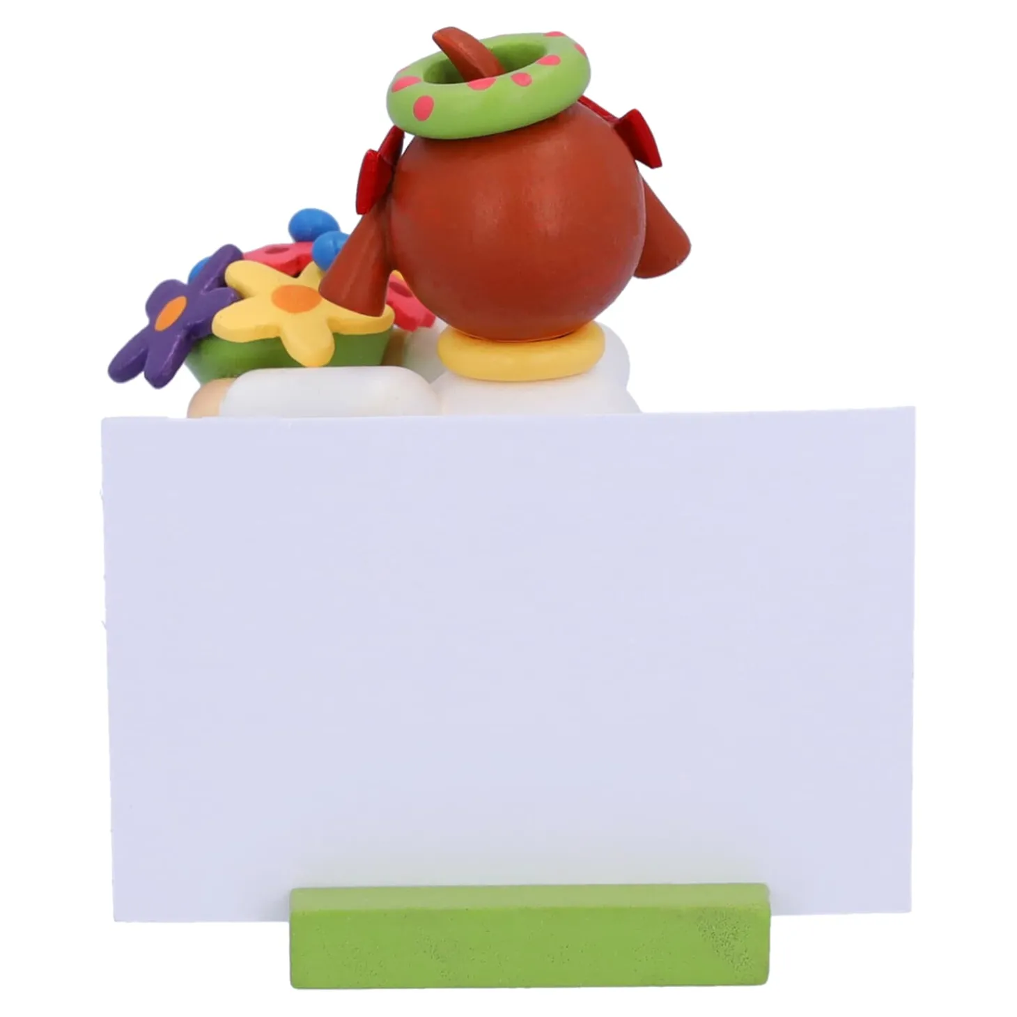 Das putzige Mädchen im weißen Kleid und mit dem Blumenkranz hält einen schönen bunten Blumenstrauß in Händen. Auf dem Sockel können Sie Ihre persönliche Botschaft platzieren. Die passenden Zettel bringt das Blumenmädchen gleich mit.