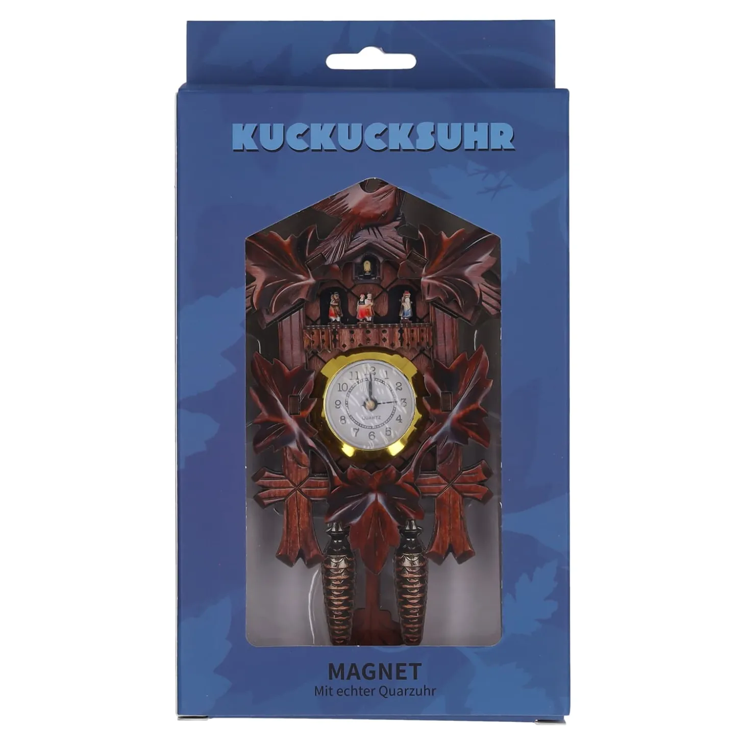 Diese kunstvoll gestaltete Magnet-Kuckucksuhr verzaubert mit ihrer eleganten, dunkel gehaltenen Holzoptik und dem imposanten Vogel, der auf dem Dach der Uhr thront. Umrahmt von detailreichen Blattmotiven, vermittelt dieses Schmuckstück traditionelle Handwerkskunst und ländliche Gemütlichkeit. Die kleinen Tänzer auf dem Balkon und die stilisierten Tannenzapfen sorgen für eine warme, heimelige Atmosphäre – wie aus einer anderen Zeit.