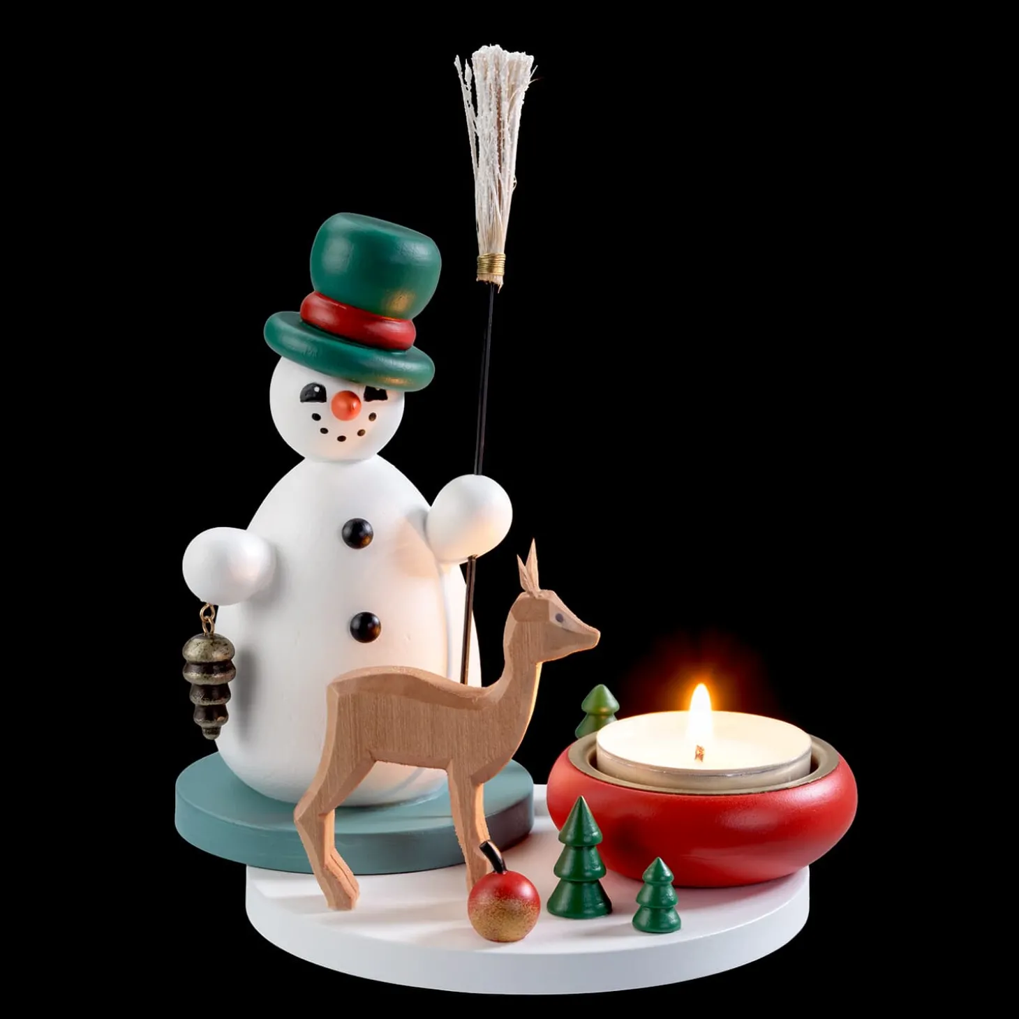 Entzünden Sie den Lichterglanz und schaffen Sie eine gemütliche Stimmung in Ihrem Zuhause! Der hübsche Schneemann und das Reh begrüßen voller Freude die kalte Jahreszeit und freuen sich auf die Weihnacht im Wald. Die bezaubernde winterliche Szenerie erstrahlt besonders schön auf dem gedeckten Weihnachtstisch.