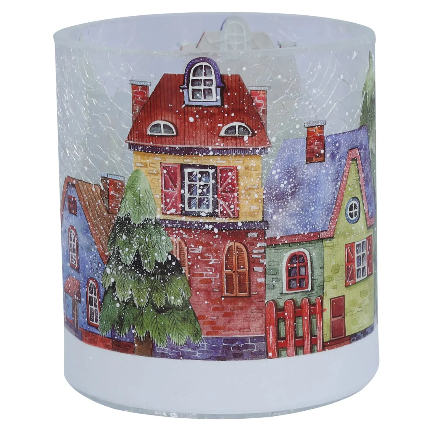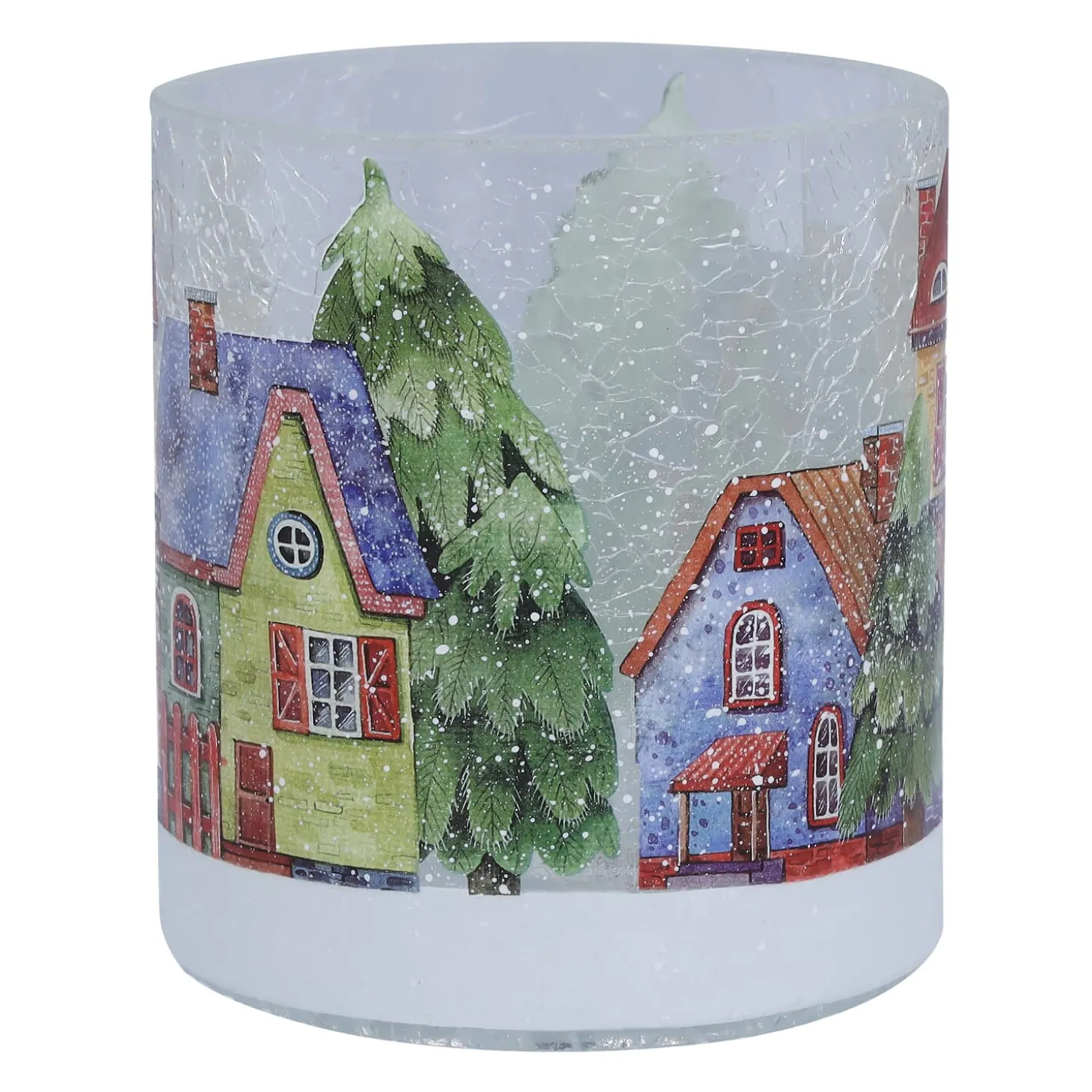 Das Windlicht in den warmen Farben zaubert eine winterliche Atmosphäre, während der Kerzenschein ein behagliches Licht verströmt.