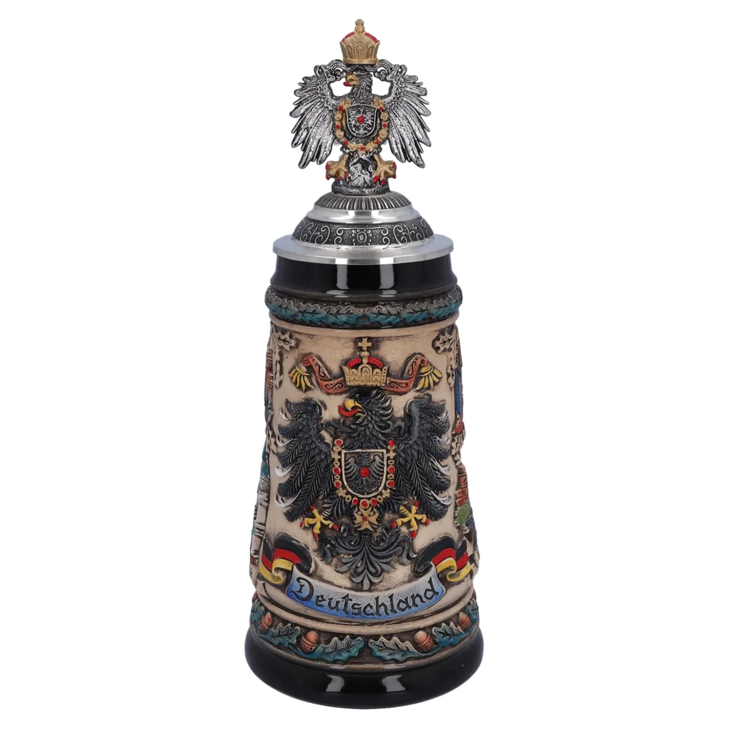Bierkrug mit Zinnadler „Deutschland“, bunt-natur, 0,5 Liter
