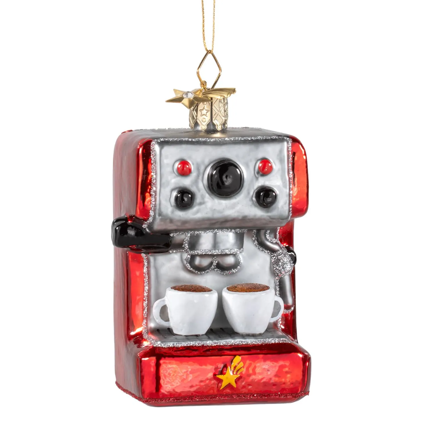 Diese detailverliebte Espressomaschine aus der Kollektion Poesie in Glas gehört zur zauberhaften Serie Weihnachtscafé und bringt einen Hauch von Kaffeehaus-Romantik an Ihren Weihnachtsbaum. Mundgeblasen und von Hand bemalt, besticht dieses Glasornament durch seinen edlen Glanz in Rot und Silber sowie liebevolle Details, die das Herz eines jeden Kaffeeliebhabers höherschlagen lassen.