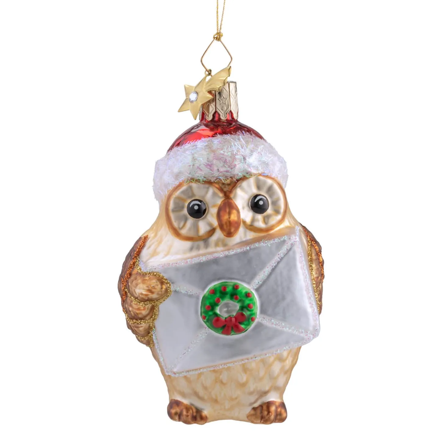 Die entzückende Eule aus der Poesie in Glas Kollektion bringt festlichen Glanz in Ihr Zuhause. Gekleidet mit einer kuscheligen Mütze hält sie einen Weihnachtsbrief zwischen ihren kräftigen Flügeln und ist bereit, die frohe Botschaft zu überbringen. Das detailreich verzierte Glasornament fängt die Magie der Weihnachtszeit auf wunderbare Weise ein und verleiht Ihrer Dekoration eine farbenfrohe Note. Ob am Weihnachtsbaum oder im Adventskranz – diese charmante Eule wird schnell zum beliebten Blickfang und bringt die Freude der Weihnacht direkt in Ihr Zuhause.