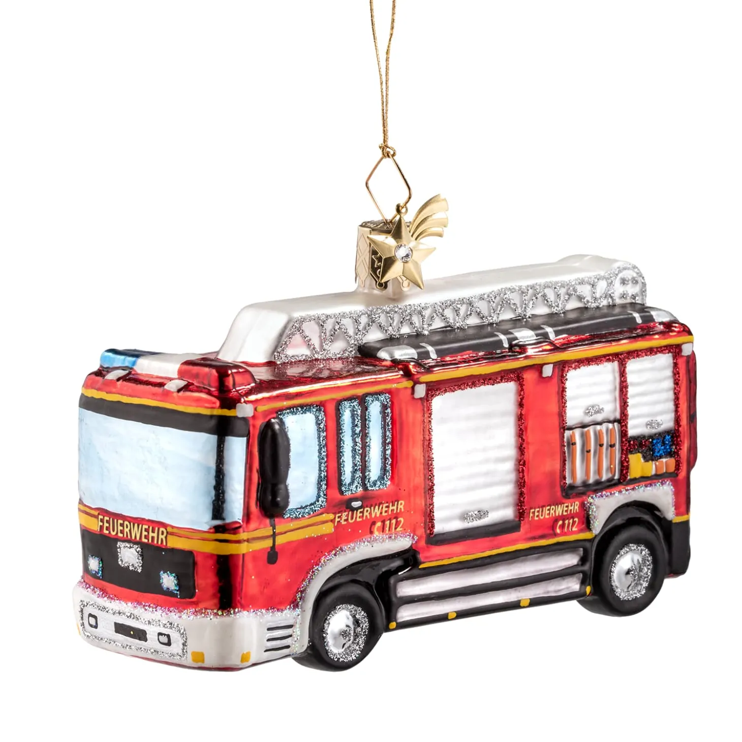 Mundgeblasen und von Hand bemalt, bringt dieser Glas-Baumbehang nicht nur feierlichen Glanz in Ihre Dekoration, sondern auch eine schöne Botschaft: ein Symbol der Verlässlichkeit und des Zusammenhalts – und eine ideale Geschenkidee für Feuerwehrbegeisterte und Alltagshelden.