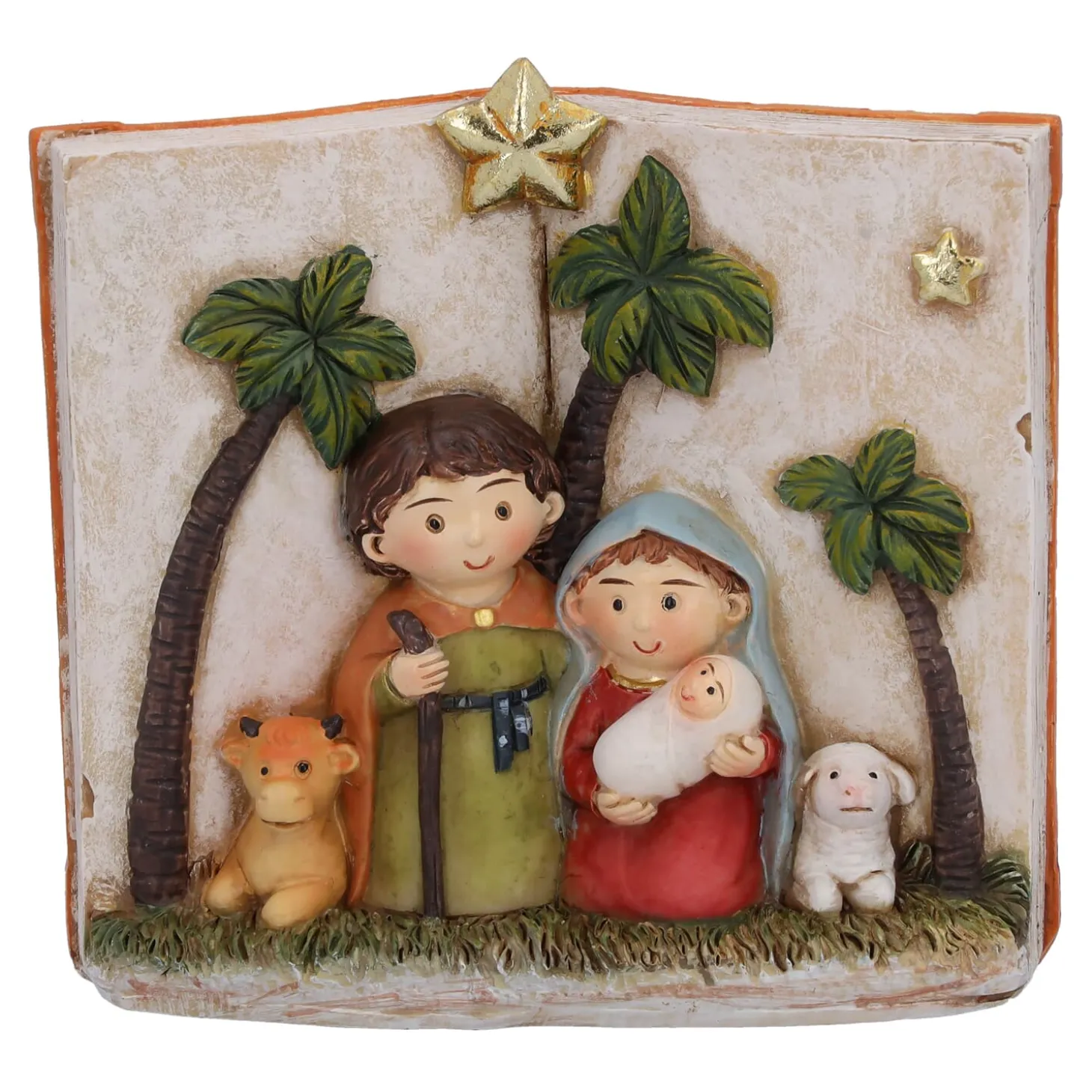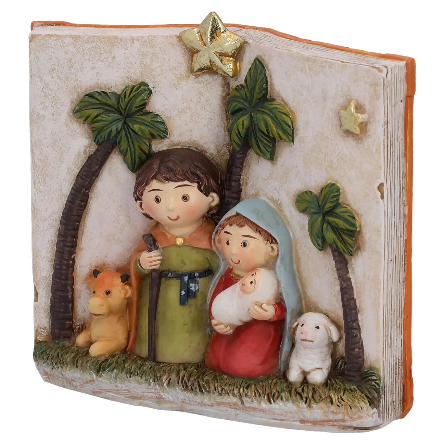 Diese liebevoll gestaltete Heilige Familie im Buch aus Kunstharz erzählt die Weihnachtsgeschichte auf eine ganz besondere Art. Mit niedlichen Figuren und zarten Details lädt dieses einzigartige Dekorationselement dazu ein, den Zauber von Weihnachten in vollen Zügen zu genießen. Ob als festliche Ergänzung Ihrer Weihnachtsdekoration oder als Geschenk – diese Krippenszene bringt Freude und Besinnlichkeit in jedes Zuhause.