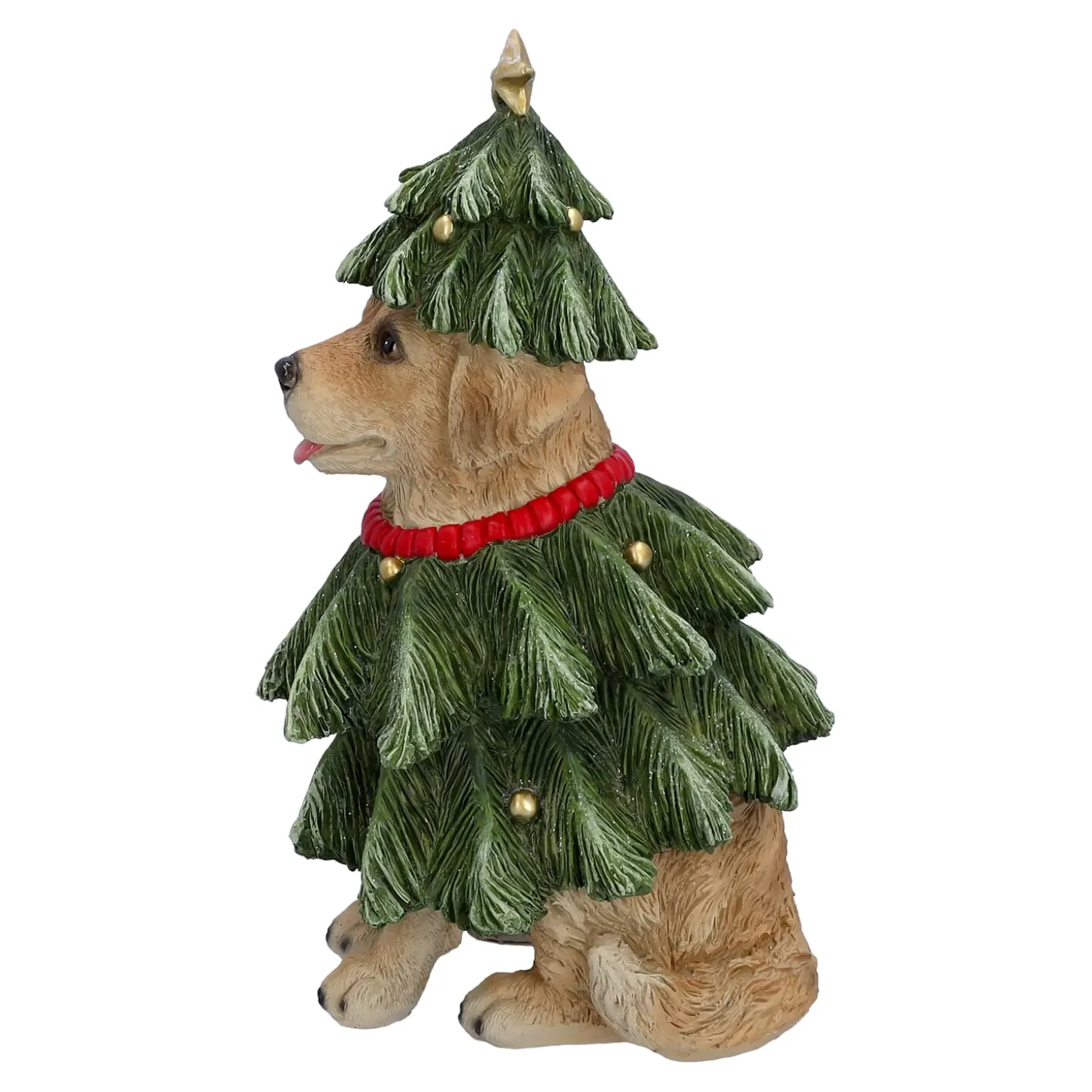 Dekofigur aus Kunstharz, Hund im Weihnachtsbaum