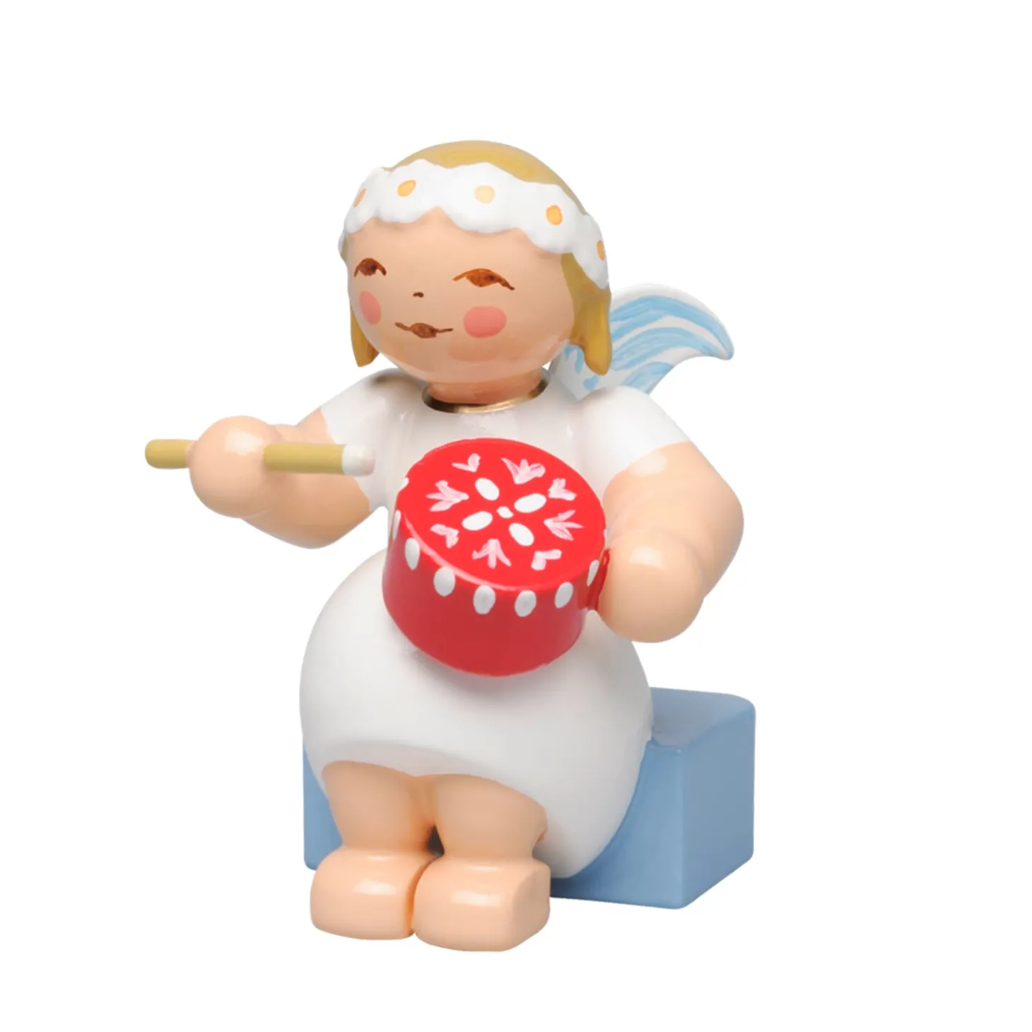 Die Margeritenengel haben einen wundervollen kindlichen Gesichtsausdruck, ein zarten Figurenkörper und haben einen Margeritenkranz auf ihrem blonden Haar. Die fleißigen Helferlein trifft man mal mit Instrumenten, Spielzeugen oder Leckereien aus der Backstube. Bis zum Weihnachtsfest gibt es immer viel zu tun.