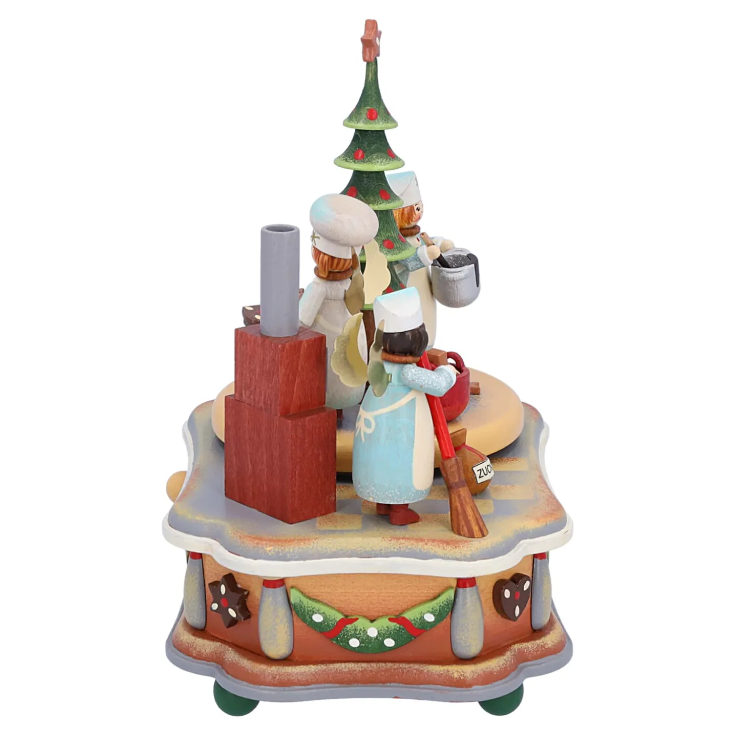 In der himmlischen Weihnachtsbäckerei backen die niedlichen Engel emsig leckere Plätzchen, Stollen oder Lebkuchen unter dem festlich geschmückten Tannenbaum und drehen sich freudig zur Musik. Süßer Weihnachtsduft strömt aus dem Rauchfang des Backofens. Riechen Sie schon den Plätzchenduft? Die liebevoll gestaltete Musikdose weckt schöne Kindheitserinnerungen und wird Ihnen viel Freude während der Weihnachtszeit bereiten.