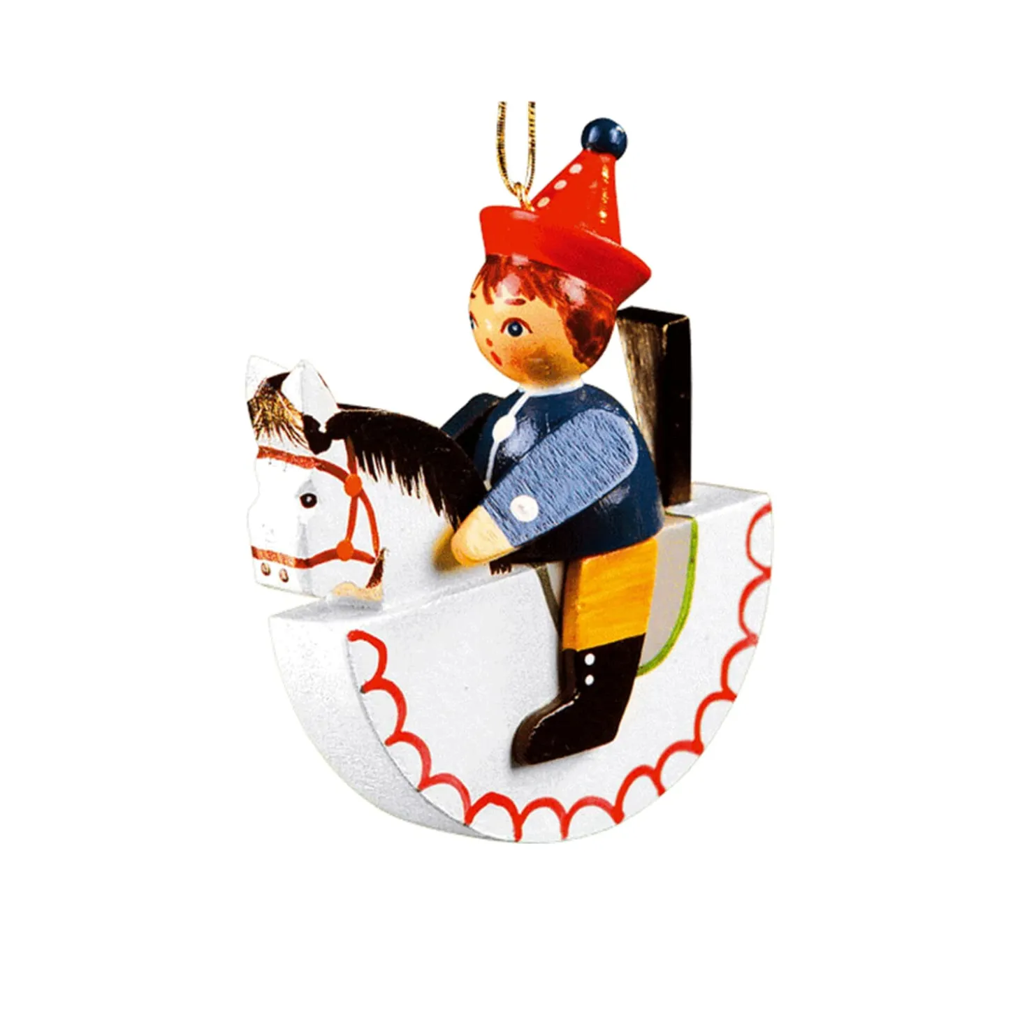 Der kleine Reiter auf seinem Schaukelpferd macht stehend oder als Baumbehang eine gute Figur und ist eine Bereicherung in Ihrer persönlichen Weihnachtsdekoration und weckt Kindheitserinnerungen.