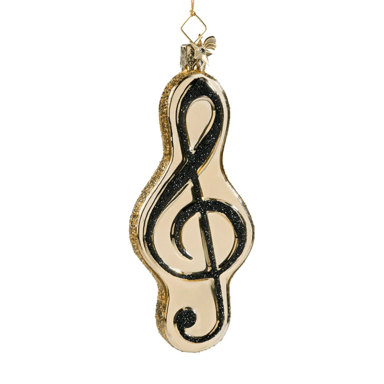 Der Violinschlüssel – Symbol der Musik, Beginn jeder Melodie und Auftakt zu festlicher Harmonie. Dieses elegant geschwungene Ornament aus Glas bringt die emotionale Tiefe musikalischer Weihnachtsmomente in dekorativer Form an den Baum.