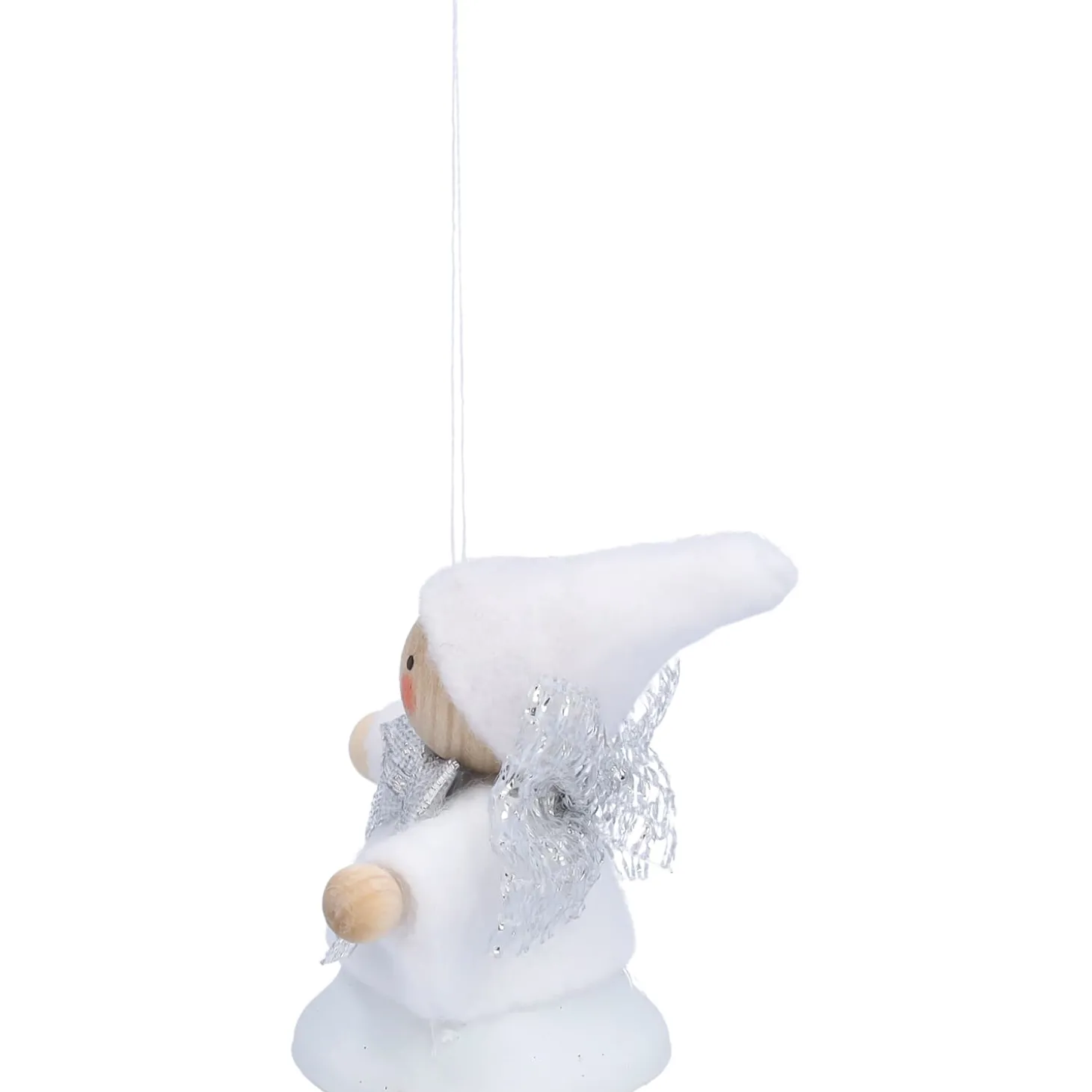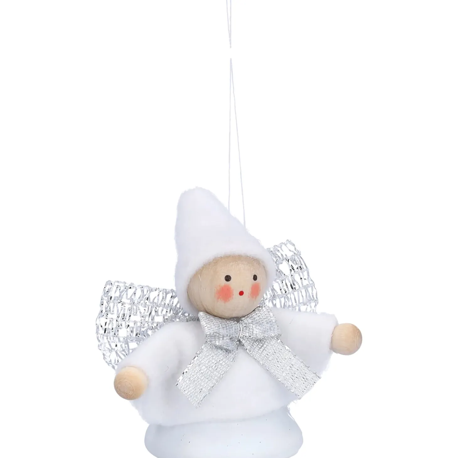 Mit seinem weißen Gewand, der silberfarbenen Schleife und den filigranen Flügeln wirkt dieser kleine Weihnachtswichtel wie ein leiser Gruß aus einer verschneiten Winterwelt. Aus Holz, Stoff und Metall gefertigt, verzaubert er mit liebevollen Details und einem Hauch festlicher Magie.